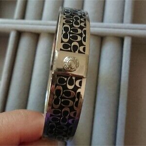 Authentic Coach Silver Tone black C Signature 1/2" Bangle Cuff Bracelet