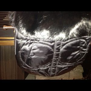 Authentic Coach Ski HOBO collections- black with real rabbit fur around the opening. Gold hardware.