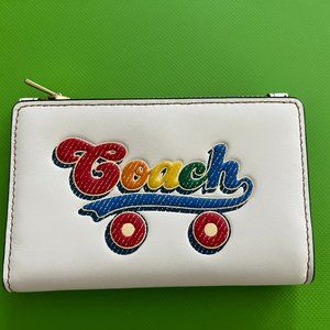 Authentic Coach Slim Card Wallet in Chalk and Brown Color Rainbow Color Logo On