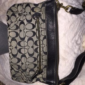 Authentic signature Coach “C” design. Serial number is shown in picture for verification of authenticity contact Coach customer service. Only used a handful of times- too small for my needs.
