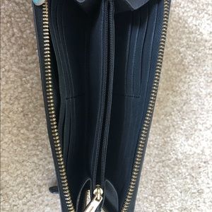 Black Coach wallet with Gold accordion zip up. Many card slots, change purse inside. Great quality