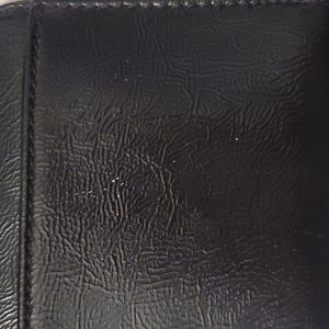 This is an Authentic Coach Wallet(Genuine Leather). Black soft leather w/ gold-toned hardware and the desined tag on front is gold-toned also. Wallet is in GUC! There's a few white specks on the back of Wallet. Please see all pictures. Other than that it's in excellent condition. Offers are Always Welcomed..