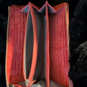 Pre-use pink and tan Coach wallet. 8 card slots on each side.4 additional slots plus change holder. Exterior excellent condition exterior (inside leather is peeling (look at pictures). Otherwise great shape.