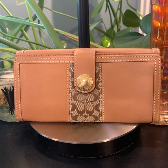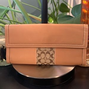 Authentic Coach genuine wallet. Tan multiple compartments inside. 12 card slots. Snap closure. 7 1/2 “ W x 4” H