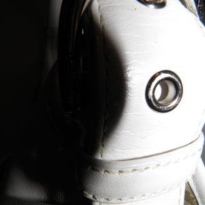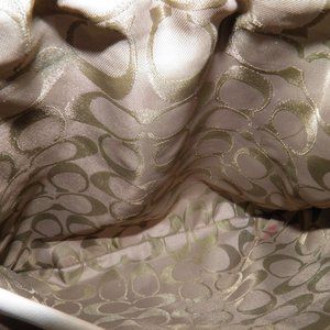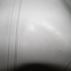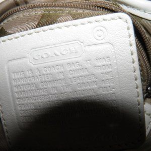 Authentic Coach White Leather Handbag. Silver hardware. 1 zipper pocket and 2 compartments inside handbag. Slight blemish on back side of bag in 5th photo. Overall very good condition. Can be worn on shoulder or adjusted as crossbody bag. Strap is adjustable.