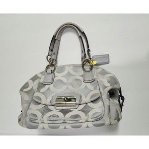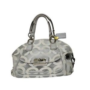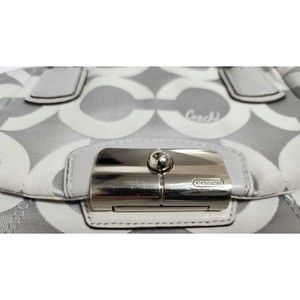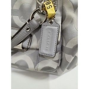 Authentic Coach Women Signature Logo Canvas Satchel Gray Silver Hardware Leather