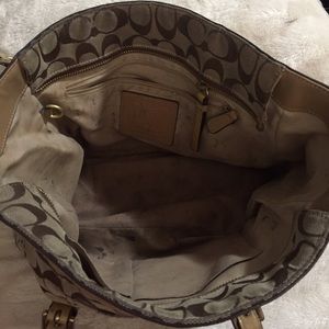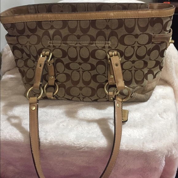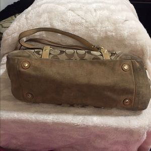 This tote is appx 12x4x9. Leather and suede trim. I bought it new from department store. Paid around $350. It was my daily bag, so it's used. See the discoloration on the handles and the pen marks on the inside. It's very well made and will last for many years. Cleaning out my closet.