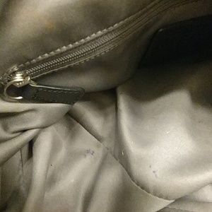 Soft, supple leather, good condition, very gently used- only wore a few times. Do not have receipt or original box/bag as this was purchased a few years ago. Inside clean, some minor wear. Small scuff on white Coach tag (see pic) and a couple of small ink stains on the inside bottom (see pics). 14" wide, 12" high