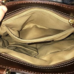 Used condition/Ok condition. Brown leather & gold hardware coach handbag. Suede patchwork print: cream, gold, and brown. Taking it to be cleaned professionally is a recommendation-some of the suede needs it!