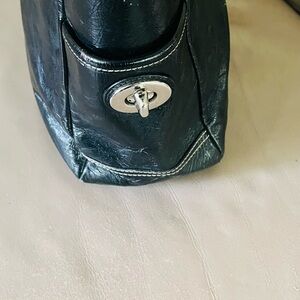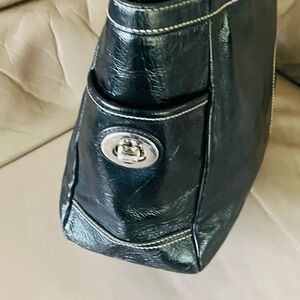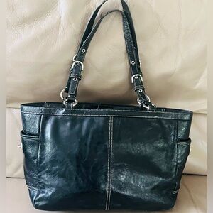 - Authentic Coach pleated Gallery Tote black patent leather bag