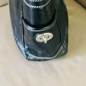 Great used condition. Strap drops- 10 inches. Hardware silver. Bag usage wear near corners, inside stains. Strap condition slightly used but strong. See last pictures for wear and stains. See pictures carefully and ask questions if needed. Bag size- 15x9x4. Large bag