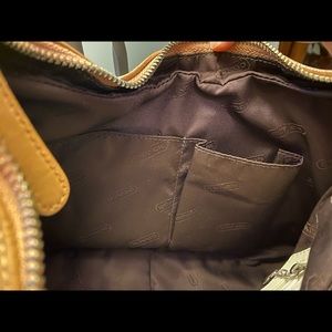 Purse is in very good condition. No tears, stains. The inside of purse is like new. 2 pockets inside to hold items and a zipper compartment. The leather on the purse outside has some wrinkles. See additional listing for pictures of matching wallet. Purchase of wallet is separate.
