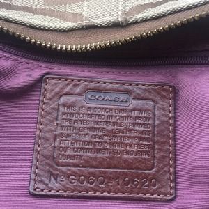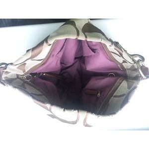 Authentic Coach signature large shoulder bag with strong brass accents. Interior and exterior are in good condition. Some fraying at the top of the bag, shown in the last picture. I do bundle and do consider offers. No trades.