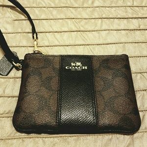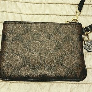 Authentic Coach Wristlet. Brown and black leather wristlet. Brand new. Has a matching pair of ballet flats!