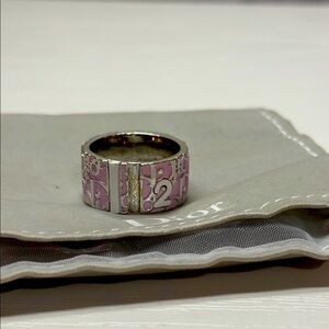 Elegant Dior women's ring in silver and pink. Perfect for adding a touch of sophistication to any outfit.GUC very beautiful Dior ring. It’s preloved items. Some miner wear. Silver hardware. Size-6 comes with dust bag. Callous is hardware has scratches. One Side line pent I removed. Check all the pictures.