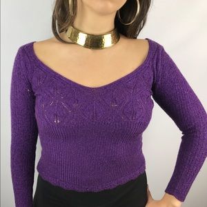 STUNNING & AUTHENTIC! Purple glitter woven D&G by Dolce & Gabanna midi sweater shirt - super flattering and elegant. Original brand label still in tact including official hologram seal. Made in Italy. Model is a size Medium, fits a XS / S comfortably or a wee bit tighter on a M.