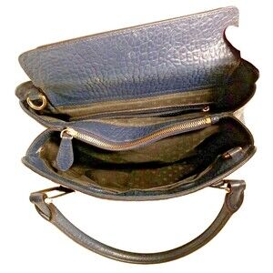 Authentic Daks London Satchel Handbag Purse Logo Blue Leather Studs Footed