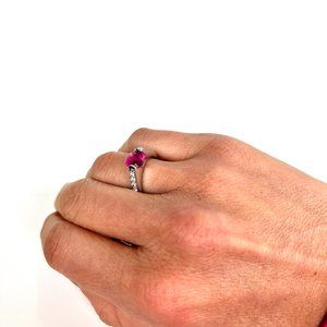 Authentic David Yurman 18k White Gold Pink Tourmaline Cable Ring 6.25
