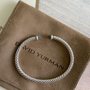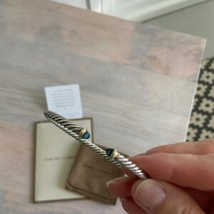 Looks like new sterling silver bracelet with gold accents and blue topaz. Purchased in May of this year. Worn only a couple of times. In excellent, like new condition.