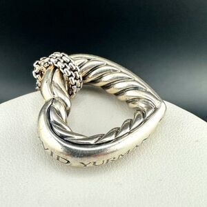 An estate David Yurman sterling silver open heart cable style pendant. The large heart is approximately 1" wide with David Yurman engraved on the outside and a 18k yellow gold David Yurman Logo set into the bottom of the heart. It is on an 16" long rounded cable chain. Good pre-owned condition with light surface wear such as scuffs or tarnish consistent with age & normal use.