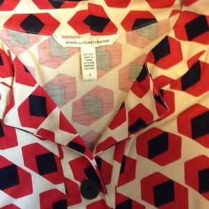 Beautiful authentic Dvf dress. Can be worn as a mini or with leggings as a tunic. Red,ivory and black. Timeless!