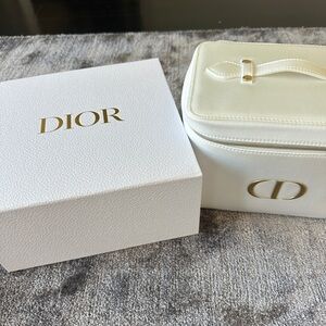 Authentic Dior Beauty Cream Vanity Case with Gold Accents