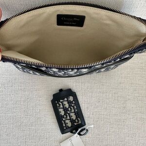 The coolest Dior oblique travel pouch with a luggage tag. Pretty spacious will fit all your travel essentials and also fits an iPad. Brand new with dust bag and authenticity card included. Your perfect travel accessory :)