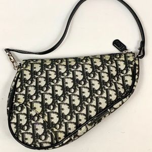 Authentic Dior Saddle Pochette Coated Canvas Black