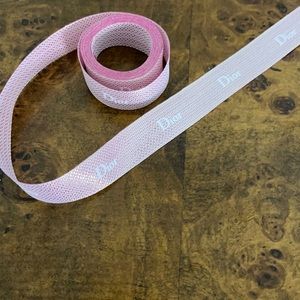 Authentic Gorgeous pink Dior Ribbon. Has very beautiful golden sparkle to it. Approximate length 50”. Approximate width 3/4”. Brand new- never used. Use it as a bracelet, a hair tie, add it to your waist belt, wrap around Apple Watch band, or tie it on your bag handle! So many possibilities!