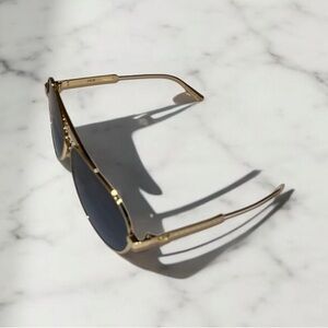 Elevate your style with these chic gold and black sunglasses. Perfect for any occasion, they offer both elegance and protection.