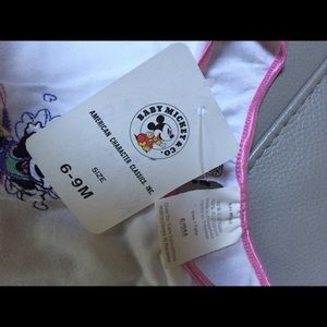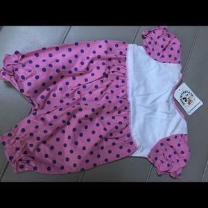 Authentic Disney Onesy...NWT...6/9M 100% Cotton. 4 snaps on bottom. Pink with Blue poka dots & White.