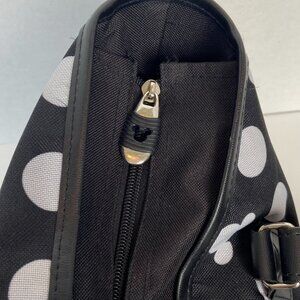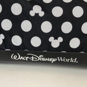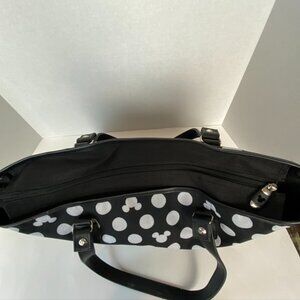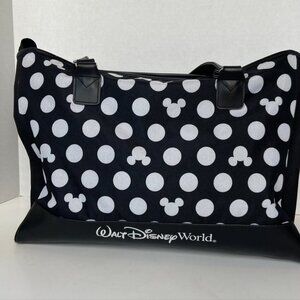 Walt Disney World Mickey Mouse Black and White Tote bag. Preowned in great condition, a few spots on the strap as depicted in photos. See photos for dimensions. Zipper closure, vinyl material.