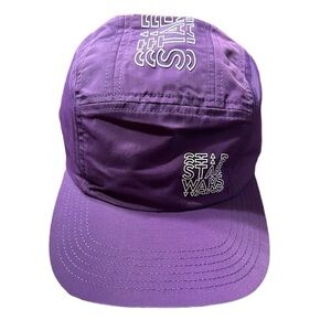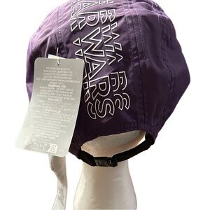 Purple cap with Star Wars text. Adjustable strap for comfort.