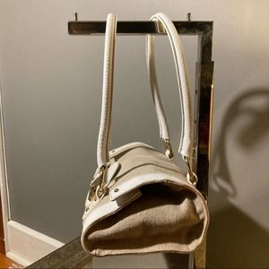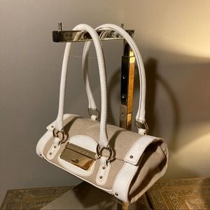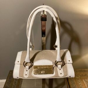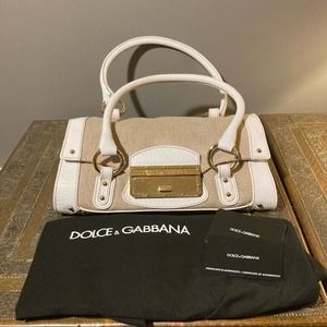 Authentic Dolce & Gabanna shoulder bag leather linen chic neutrals baguette mixed media
