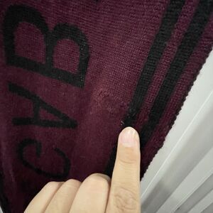 Scarf feels nice soft not faded but it seems to have been repaired somewhat on picture 4. A slight pin hole by the letter D.