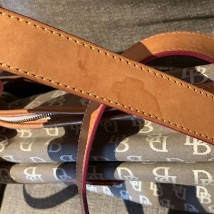 Gently Loved Dooney & Bourke Diaper Bag .. This bag has been gently loved see normal wear on corners .. comes with original Diaper Changing Pad.. the bag is leather trimmed along with long leather straps.. You wont be disappointed..