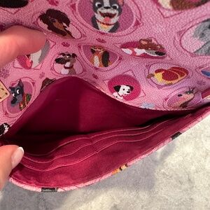 Purchased in Magic Kingdom this crossbody with detachable strap looks brand new. Used gently twice & from a smoker free home. Zipper pocket, folds over front with main pocket which includes cardholder slots. Deep back pocket. Water resistant leather bag. 3/4" deep 8 1/2 " w x6" H $150.00