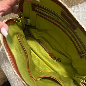 This authentic Dooney & Bourke Disney Star Wars handbag is a classic and perfect for any Star Wars lover! This handbag is in excellent condition and just has a minor defect on the inside of one of the handles (see pictures). It was purchased at Walt Disney World. This bag has a zippered pouch and additional pouch in front of it on the left side of the interior and a two more open pouches on the right side of the interior pouch. It also has a clip inside to clip on your keys or other item. This bag can also be worn as a crossbody as it comes with a crossbody strap that can be hooked onto the bag.