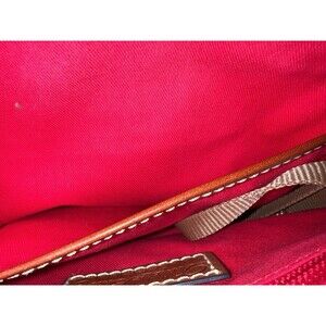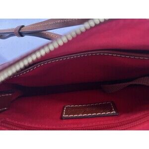 The bag includes inner pockets and a key clip, with a canvas lining in red color. The bag is perfect for women who like colorful and elegant accessories. It is a medium-sized bag and has a solid pattern with pebble characters. The bag is not handmade and is not a vintage product. This bag goes for $99 on Amazon/Manufactures website. Reselling for 80 as it was barely used.