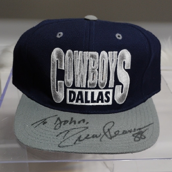 Never worn, authentic Drew Pearson 88 signed snap back Dallas Cowboys cap! Show your team spirit with this Dallas Cowboys cap. Featuring a stylish navy and gray design, it's perfect for any fan. Clear box not included in sale. Used to store items to keep from damage and stains.