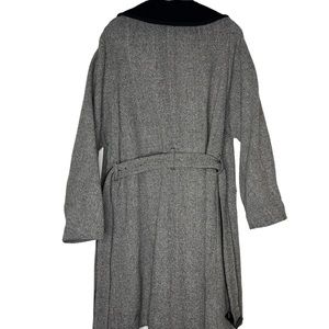 Authentic Emporio Armani Double-Breasted Herringbone Long Belted Coat. This coat is new without tags. Snap buttons. Front pockets. 78% wool, 19% Polyamide, 3% Polyester. Appx measurements with garment laying flat: pit to pit 23", sleeve 26", shoulder (back measurement) 16", length 40". Please note size 46 is in EU sizing.