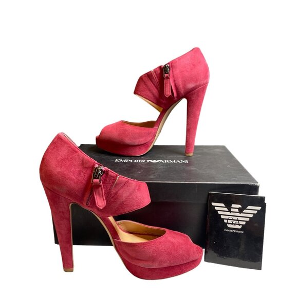 Authentic Emporio Armani Women's Dark Pink Suede Peep Toe High Heel Sz 38
