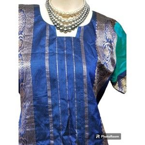 This authentic ethnic Indian kurta is a stunning piece that is perfect for boho and hippie fashion lovers. The beautiful blue color and silk blend material create a stylish and comfortable kurti/kameez that is perfect for women who want to stand out. Made in India, this piece brings a touch of traditional style from that region and is perfect for anyone who loves world and traditional clothing. The size of this kurta is medium and it is suitable for women who are looking for a unique and eye-catching addition to their wardrobe.