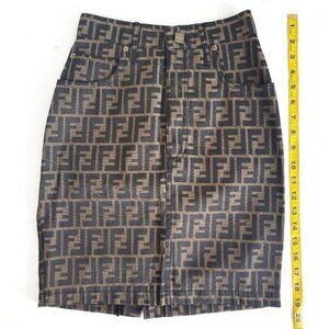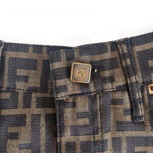 Authentic FENDI FF Zucca Vintage Printed Mini Skirt Brown Tan Pockets