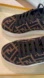Tobacco/Black. White rubber Fendi embossed soles, thick black laces. Back of shoe is leather strap and gold emblem embossed.