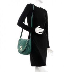 Authentic FENDI Metallic Suede Calfskin Crossbody Bag Beige