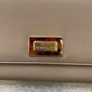 Authentic FENDI Gray Beige Roman Leather Long Wallet Made in Italy