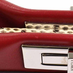 Authentic FENDI Peekaboo Handbag Shoulder Bag Dark Red Leather/Silvertone