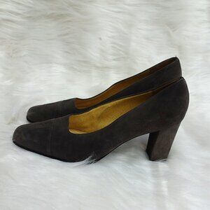 Here is a stunning pair of vintage Fendi Scarpe pumps, crafted from luxurious brown suede leather. These classic pumps exude timeless elegance and sophistication, making them a must-have addition to any fashion lover's wardrobe.