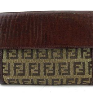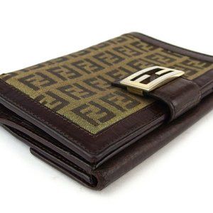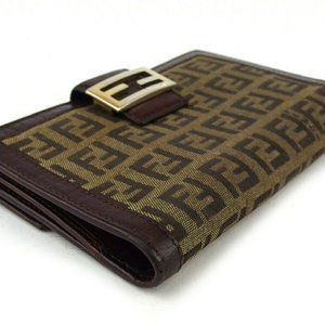 Authentic FENDI W Hook Wallet Zucchino Beige Canvas ~ Leather Auth Used